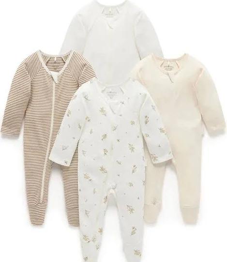 Purebaby Natural Zip Sleepsuits 4 Pack Upto 3 Months (50 – 62cm)
